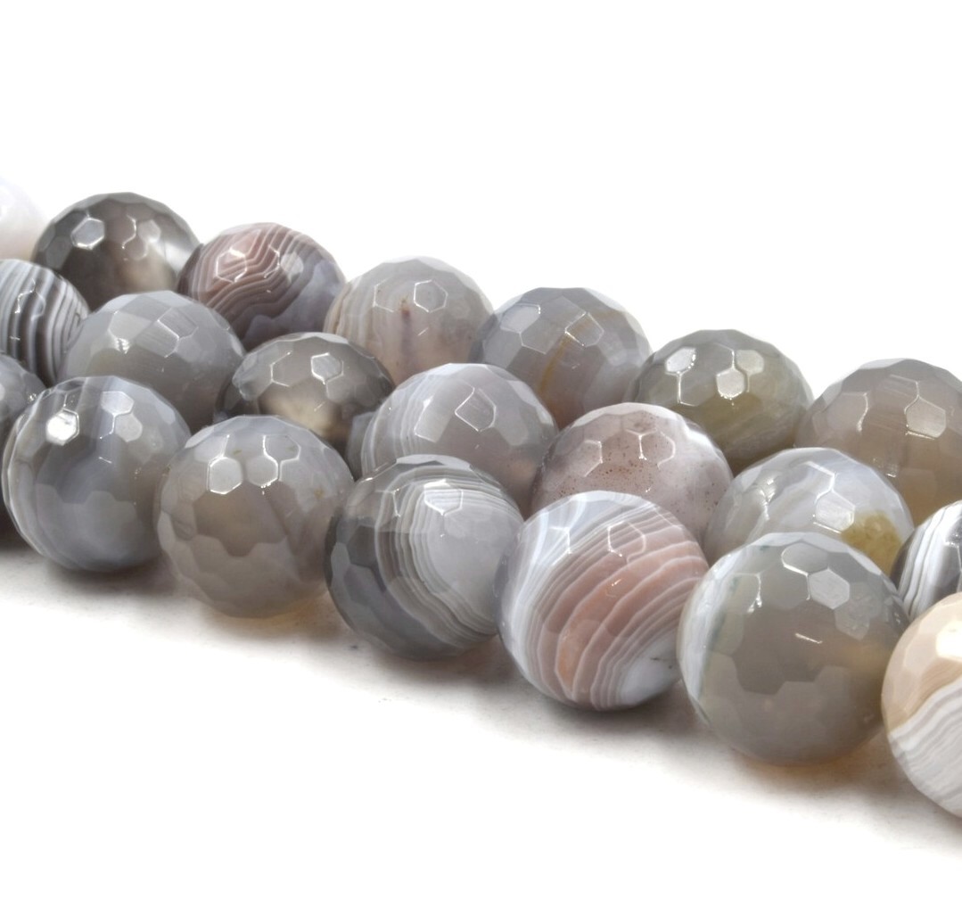 Opis produktuNazwa kamienia: agat botswanaKształt: fasetowane kuleŚrednica: 8 mmOtwór: 0,9 mmIlość: 1 sznur o długości 40 cm