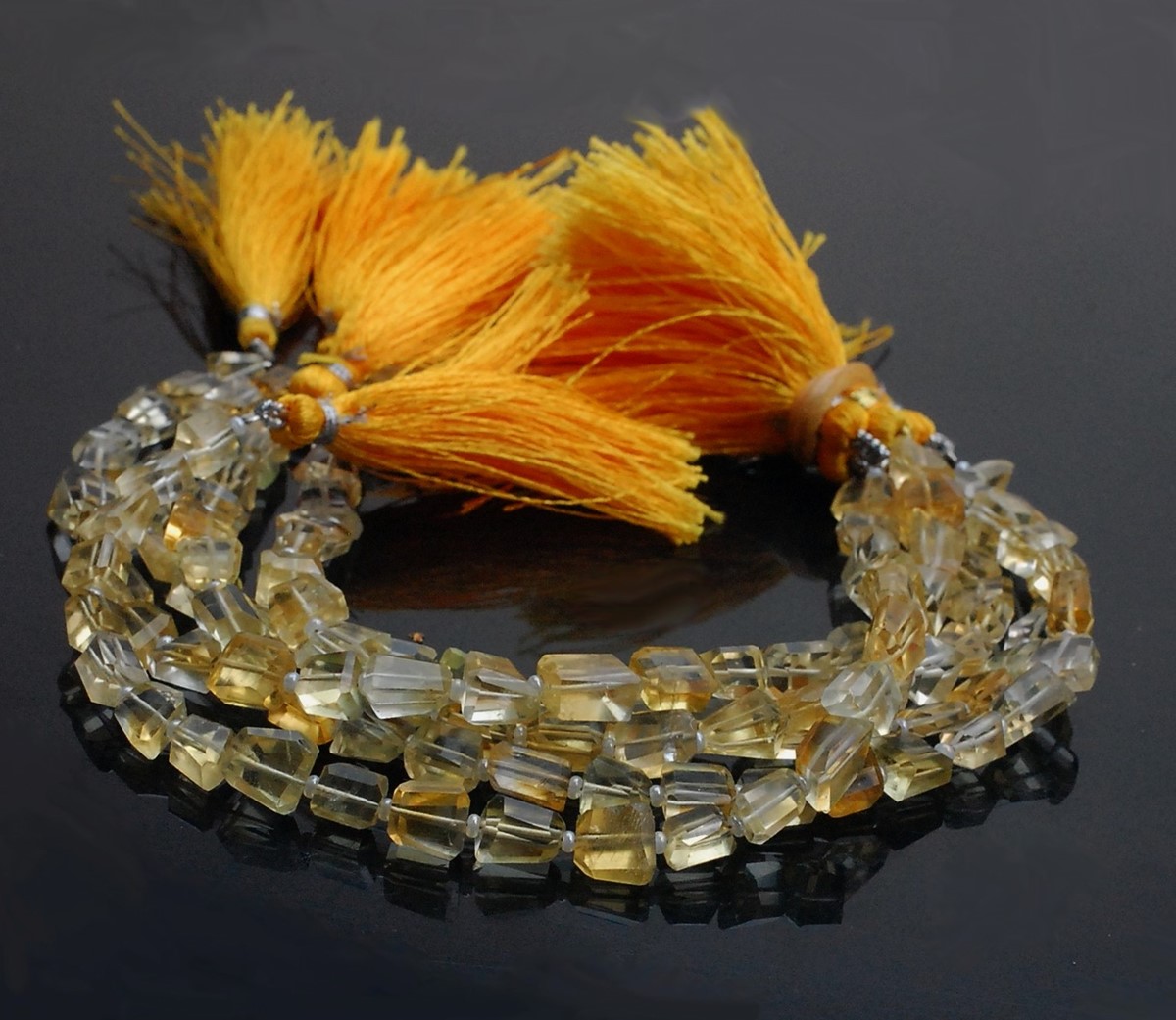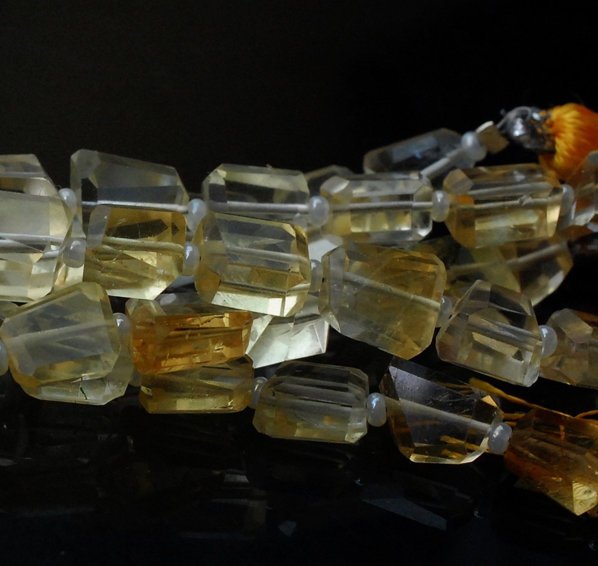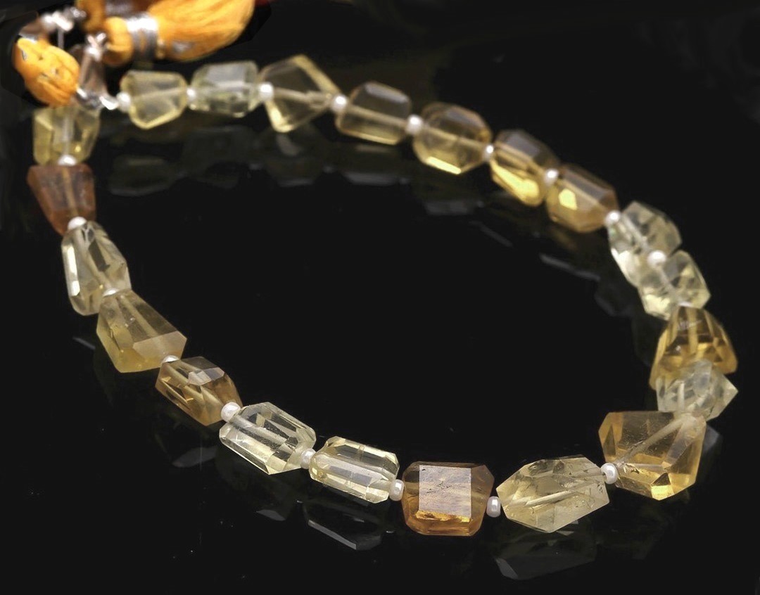 Opis produktuNazwa kamienia: cytrynKształt: fasetowane bryłkiwymiary: 9 mm – 6 mmIlość: 1 sznur o długości 20 cm