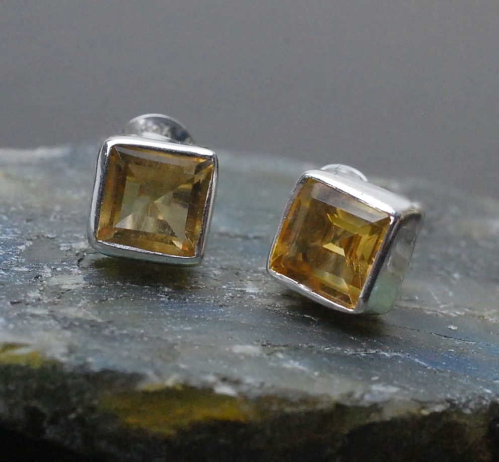 Kolczyki srebrne z fasetowanym cytrynem