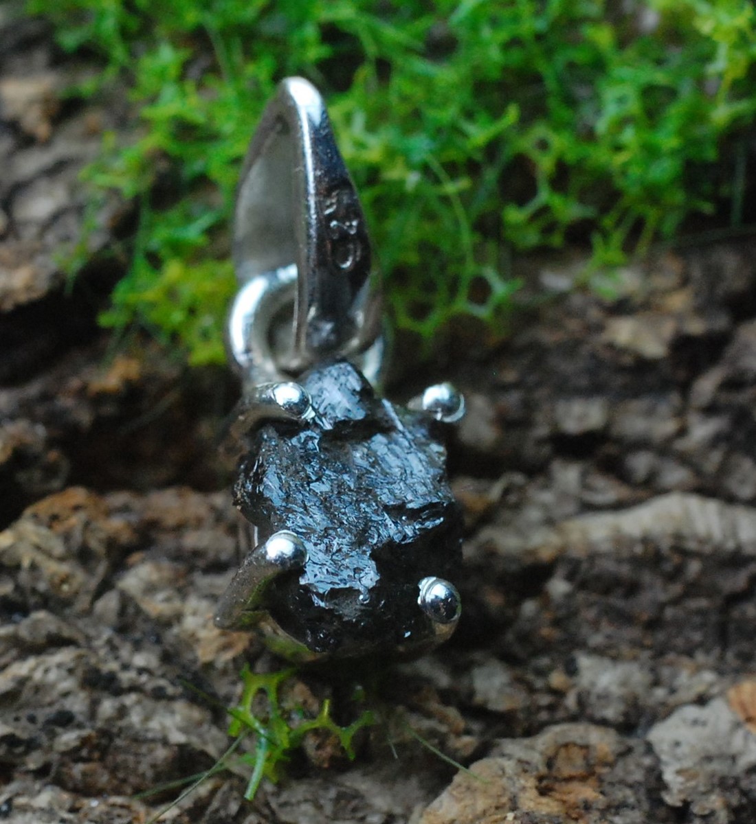 Wisiorek srebrny z naturalnym, surowym diamentem