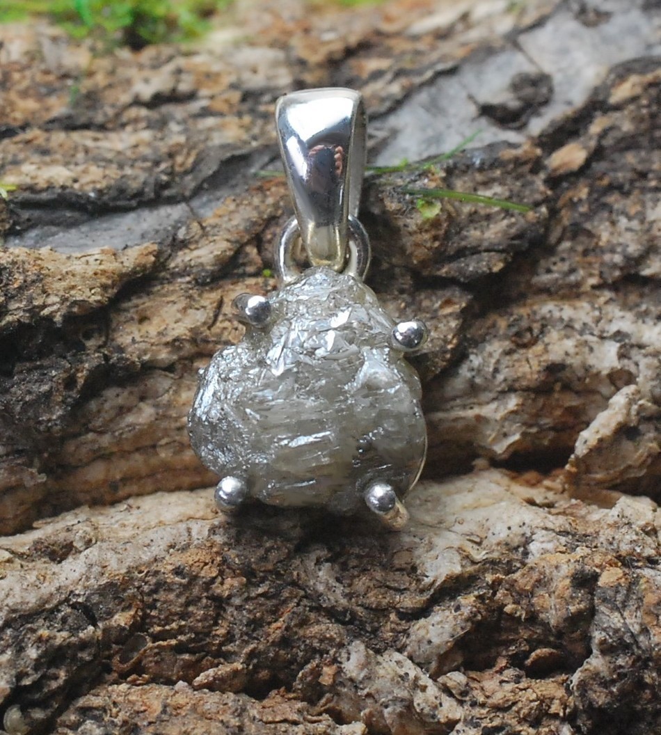 Wisiorek srebrny z naturalnym, surowym diamentem