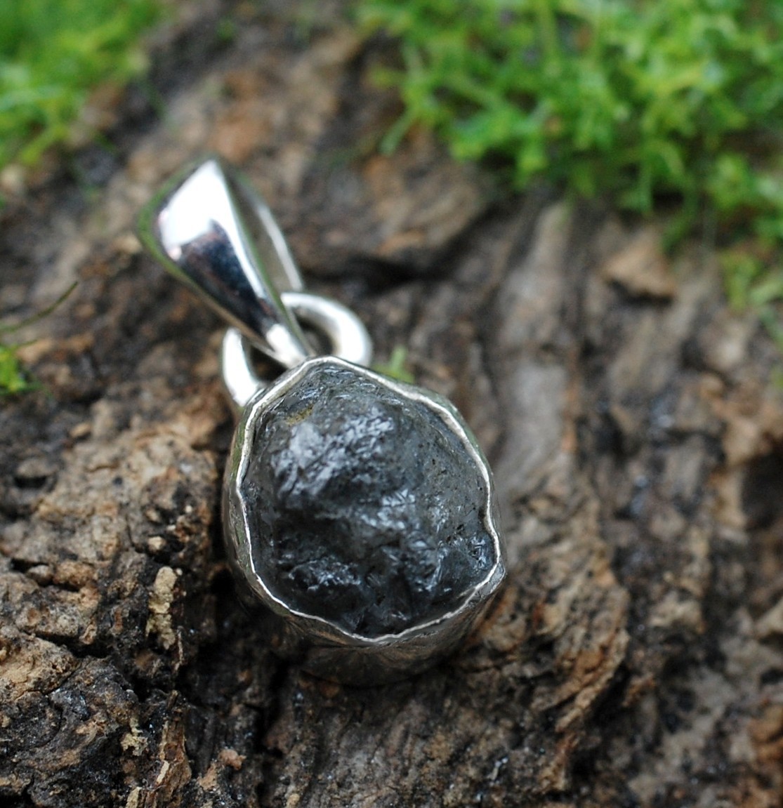 Wisiorek srebrny z naturalnym, surowym diamentem