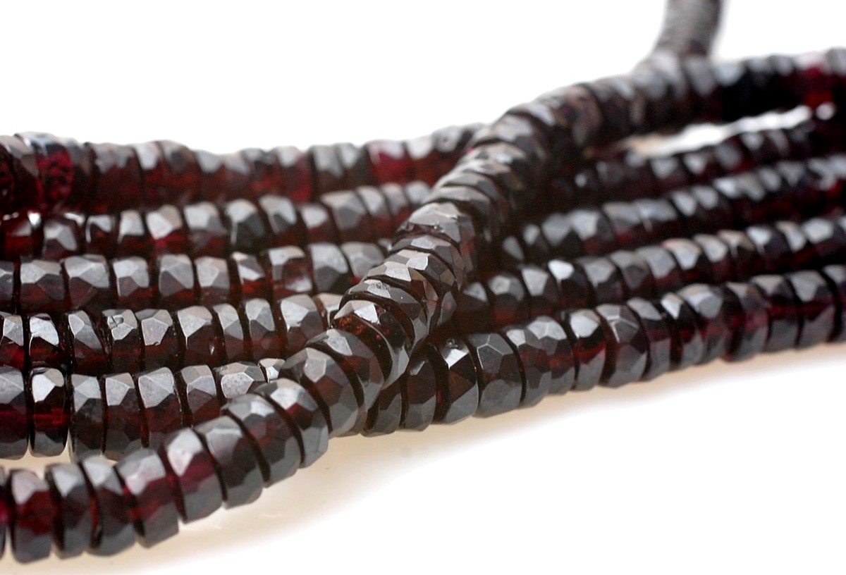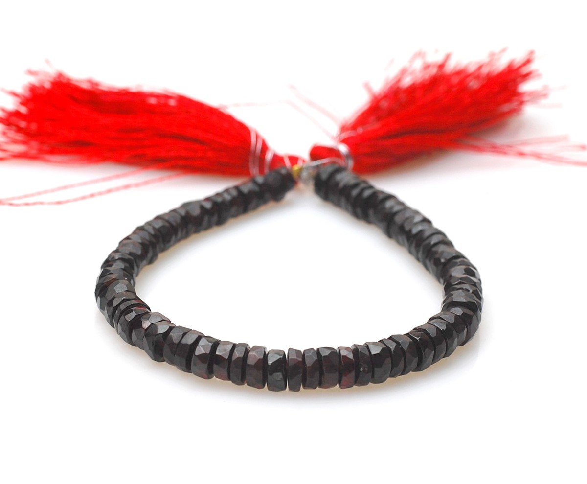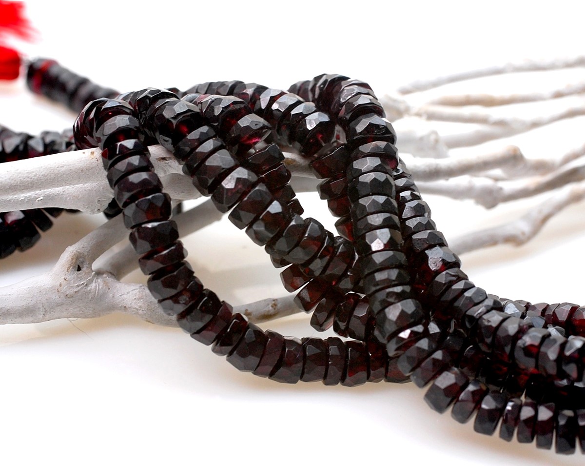 Opis produktuNazwa kamienia: GranatKształt: fasetowane krążkiŚrednica:7 mm - 6 mmOtwór: 0,5 mmIlość: 1 sznur o długości 18 cm