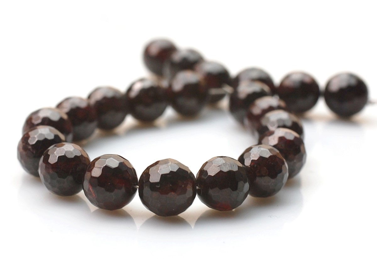 Opis produktuNazwa kamienia: GranatKształt: fasetowane kuleŚrednica: 8 mmOtwór: 0,9 mmIlość: 1 sznur o długości 18 cm