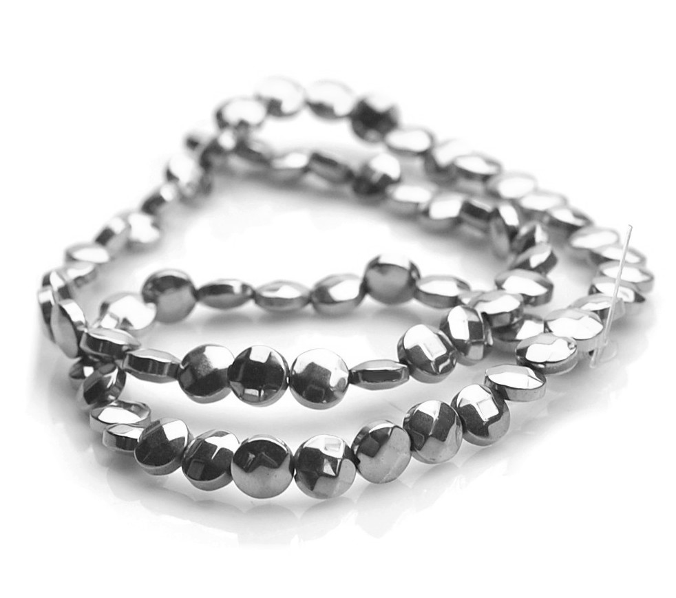 Hematyt srebrny fasetowane pastylki 6 mm - sznur
