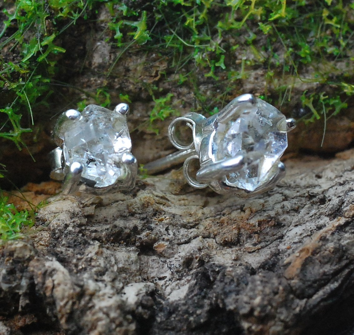 Kolczyki srebrne z diamentem herkimer