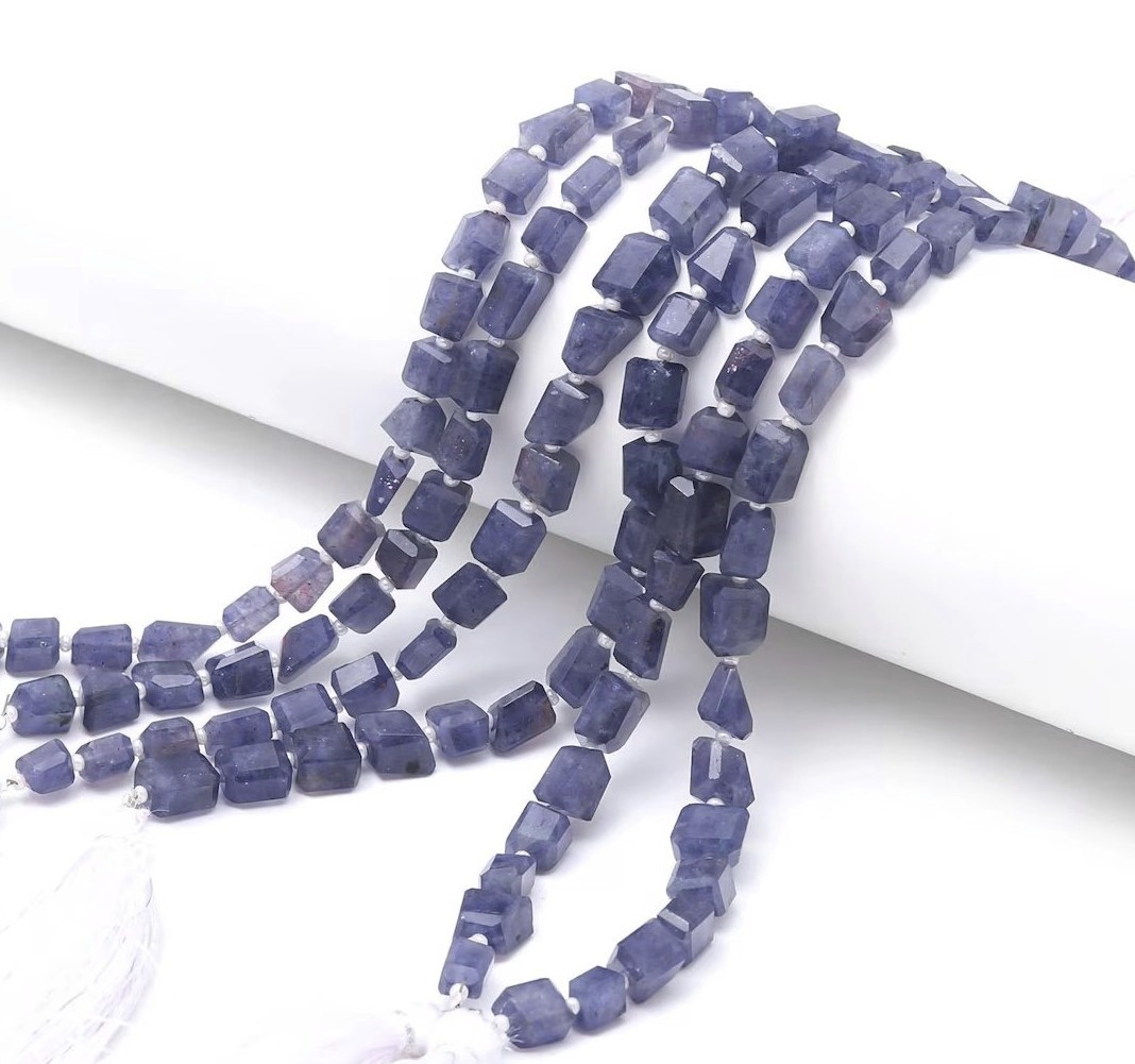 Opis produktuNazwa kamienia: iolitKształt: fasetowane bryłkiwymiary: 9 mm – 7 mmIlość: 1 sznur o długości 20 cm