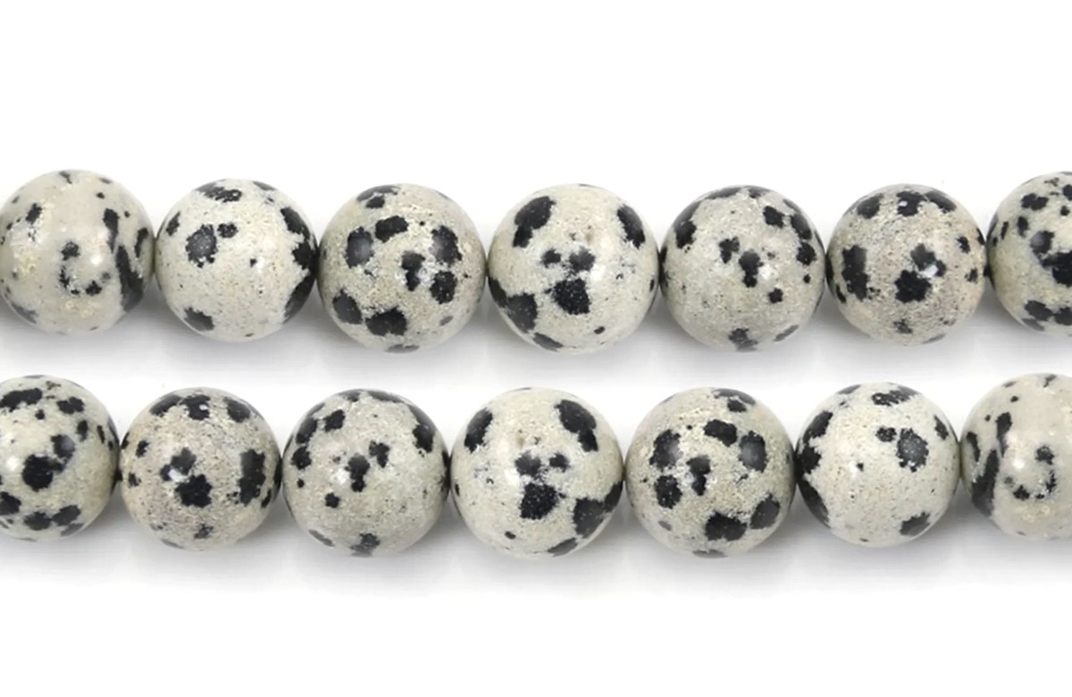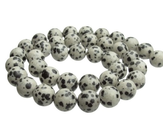 Opis produktuNazwa kamienia: Jaspis dalmatyńczykKształt: kuleŚrednica: 10 mmOtwór: 1 mmIlość: 1 sznur o długości 38 cm