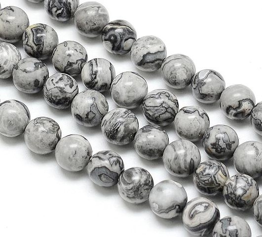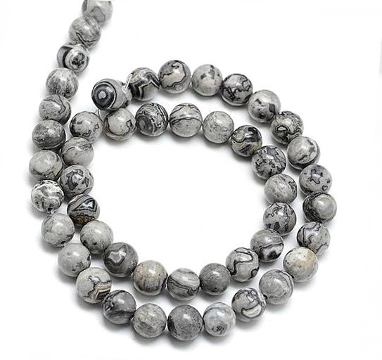 Jaspis picasso kule 6 mm -  sznur (szary)Jaspis picasso kule 6 mm -  sznur (szary)