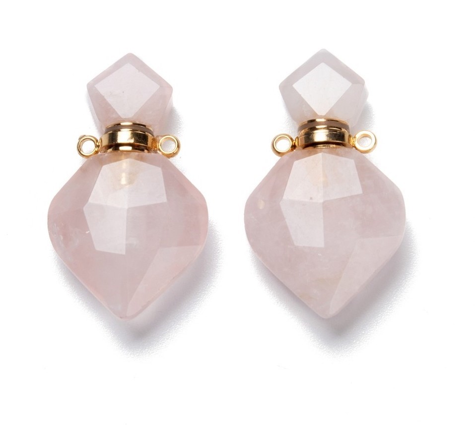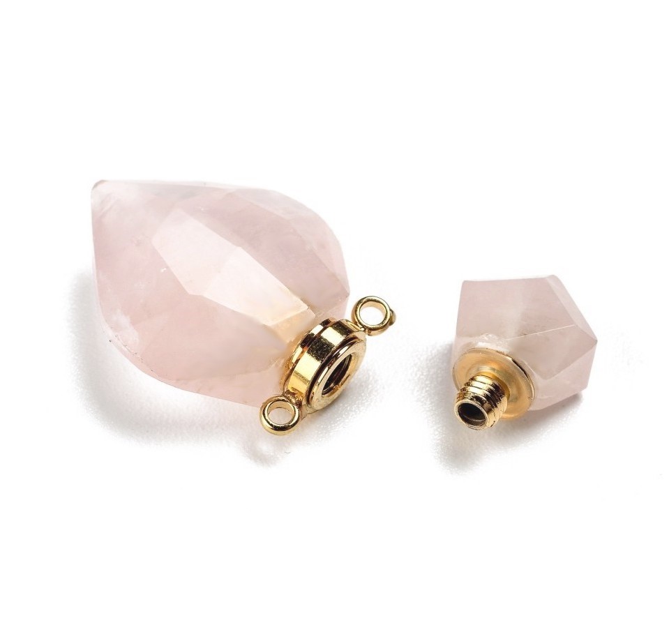 Fasetowanej butelecza z naturalnego różowego kwarcu .