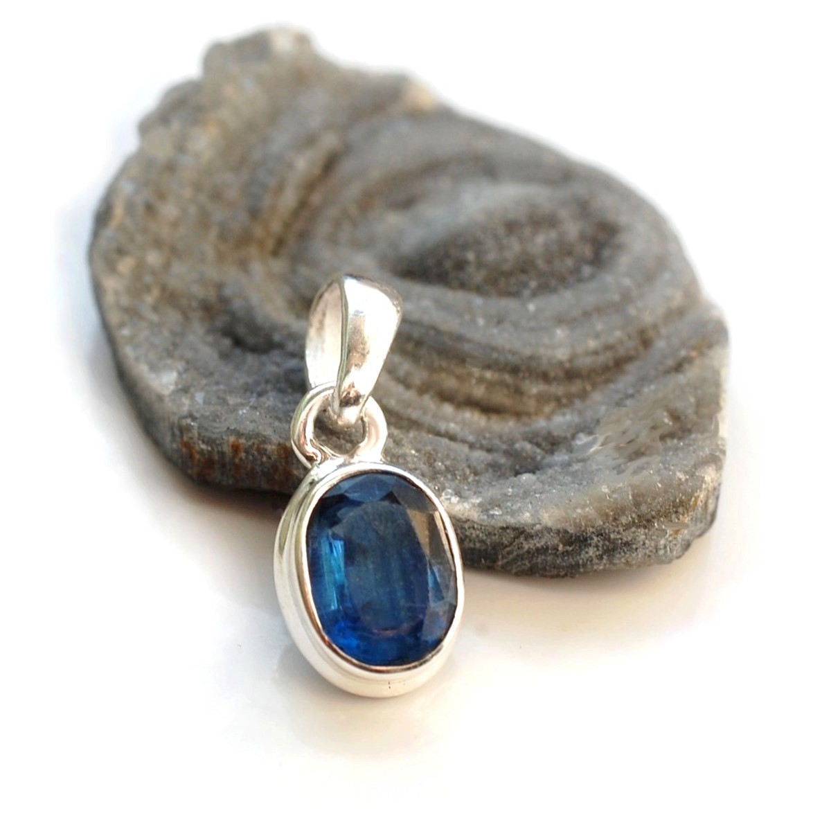 Wisiorek srebrny z naturalnym kyanitem nepalskim.
