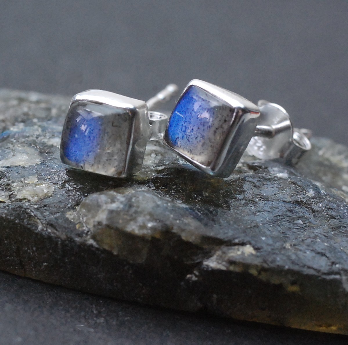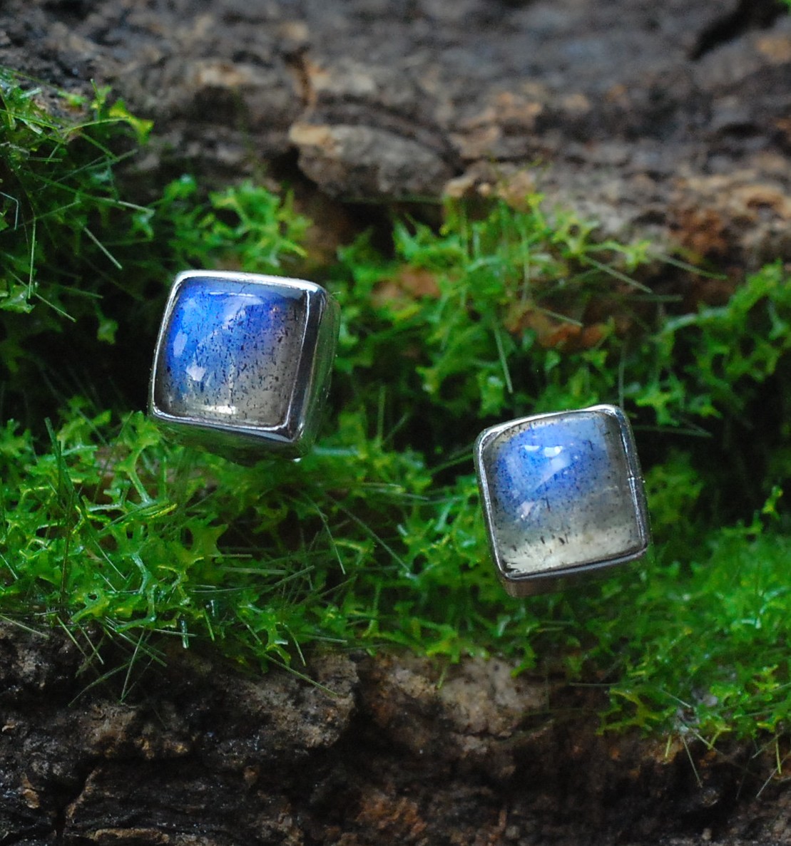 Kolczyki srebrne z naturalnym labradorytem