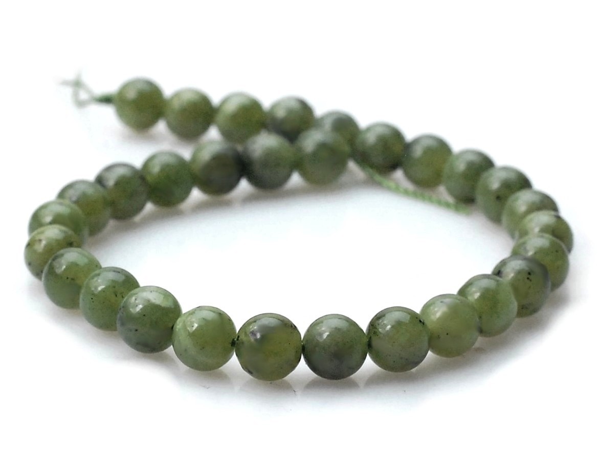 Opis produktuNazwa kamienia: Nefryt kanadyjski Kształt: kuleŚrednica: 6 mmOtwór: 0,9 mmIlość: 1 sznur o długości 19 cm