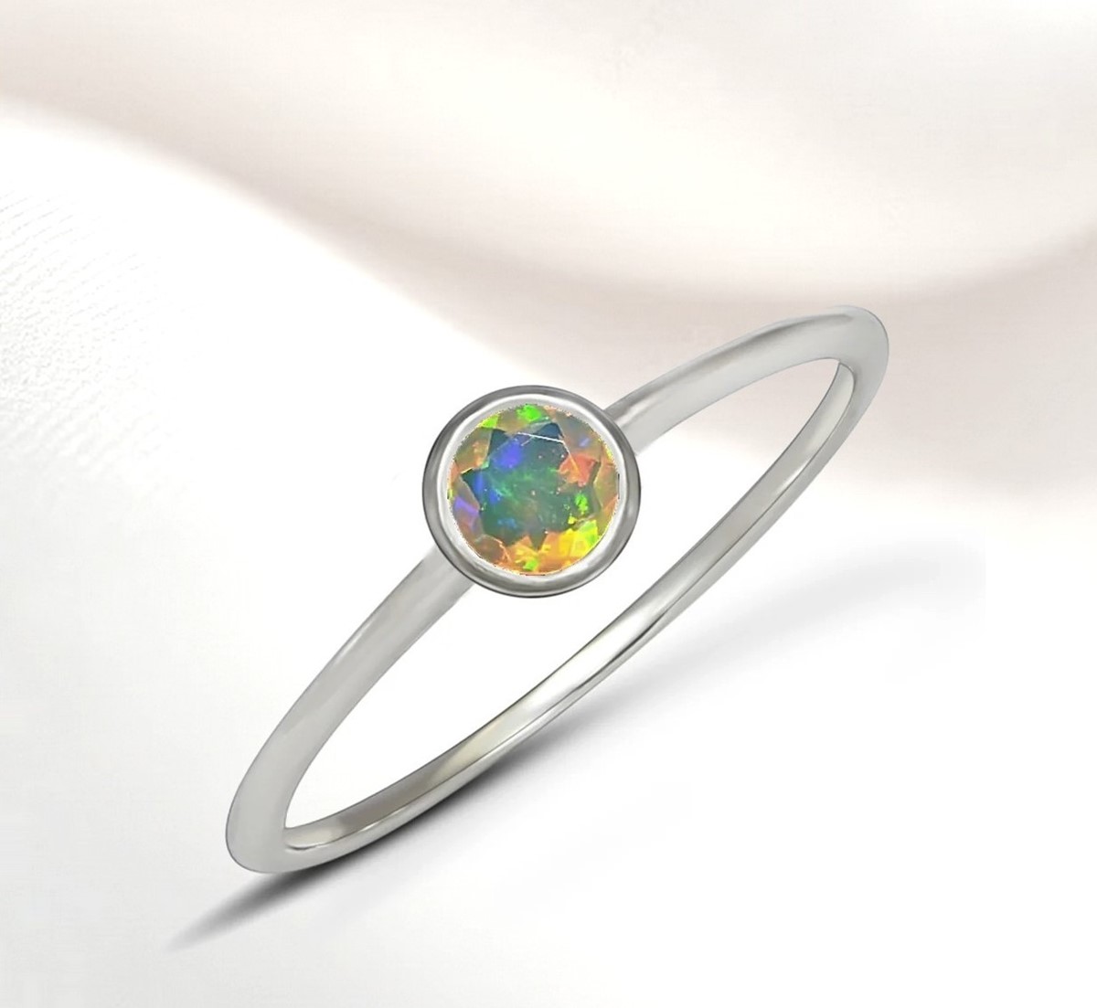 Pierścionek srebrny z naturalnym opalem etiopskim