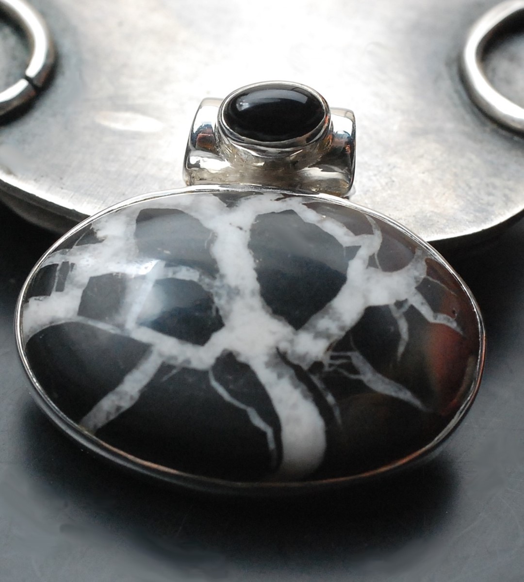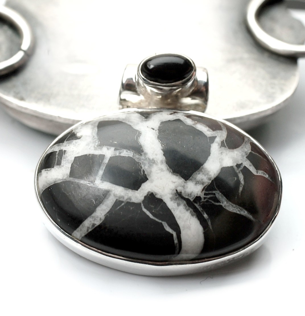 Wisiorek srebrny z septarianem i czarnym turmalinem