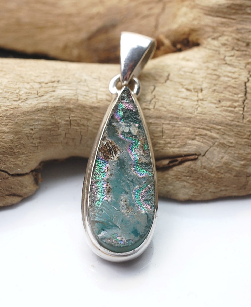 Wisiorek srebrny z antycznym szkłem afgańskim